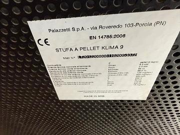 Stufa a pellet in buone condizioni, potenza termica regolabile 8.5 kW (riscalda fino a 90 mq), modello Klima 9. Caratteristiche come da foto allegata.