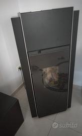 Stufa a pellet in acciaio nero e porta con vetro specchiato. Doppio motore per canalizzazione e motore riscaldamento ambiente. Pannello comandi touch. Si vendono assieme alla stufa anche i tubi per la canna fumaria.