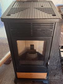 Stufa a pellet dal design moderno e accattivante con finiture color arancio .