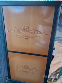 dettagli decorativi incisi sui pannelli ampia vetrata per la visione della fiamma