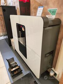 Stufa a pellet canalizzabile con piedistallo in metallo. Area riscaldabile 100 metri quadrati con potenza nominale 10.6 KW.