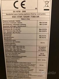 Stufa a pellet MCZ modello Tobe Air. Potenza 8 Kw. Telecomando programmabile completo di istruzioni. Rivestimento con 4 piastrelle in maiolica. Uscita aria piano superiore. Possibilità di consegna mezzo nostro in zone limitrofe, o zona Desenzano Brescia.