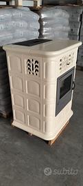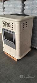 kw 10 riscalda 100 mq con ventilatore frontale. serbatoio pellet da 15 kg, focolare in ghisa con doppia candeletta di accensione