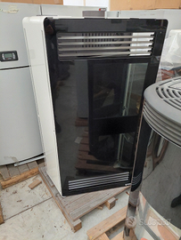 Stufa bicombustibile legna/pellet a modulazione di combustione automatica per il riscaldamento domestico. La ventilazione inferiore può essere canalizzata. Facile manutenzione. Spedizione in Italia prodotto nuovo in esposizione
