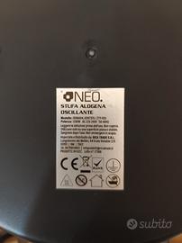 Stufa alogena praticamente nuova, marca Neo, modello ZYY-H10, potenza modulabile su tre livelli: 400w, 800w, 1200w, oscillante destra - sinistra, spegnimento automatico in caso di ribaltamento, con imballaggio e scatola originale, utilizzato pochissimo. Integro in tutte le sue parti.