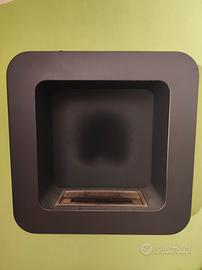 stufa a parete dimensioni 19 x 19 x 5 cm, funziona con liquido bioetanolo. Si appende con 2 semplici viti a muro.