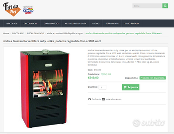 Vendo stufa a bioetanolo modello Ruby Unika ventilata.