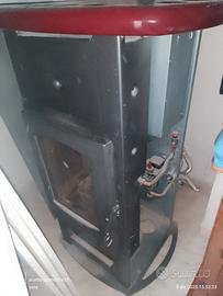 smontata per pulizia della stufa, ma sportello in foto montabile. stufa per casa a tre piani o meno con attacco di caloriferi.