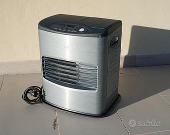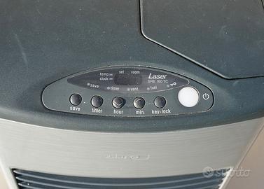 Stufa catalitica modello SRE 160 TC a petrolio bianco, completamente automatica con ventola per aria calda e timer esterno nuovo, senza canna fumaria. Due pompette per ricarica petrolio + 2 tappi per serbatoio + manuale di istruzioni: Stufa come nuova e revisionata. Utilizzata molto poco come nuova, vendo perché non utilizzo. Dimensioni H cm 43 H x cm 23 P x cm 36 L