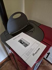 Stufa a pellet con camera di combustione interamente in ghisa. Scarico forzato a parete.