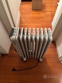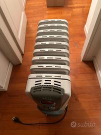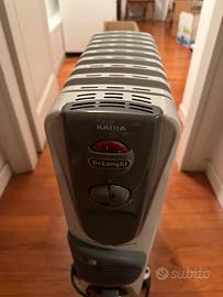 stufa elettrica De Longhi con manopola per la regolazione della potenza (livelli di riscaldamento) e selettore di intensità.