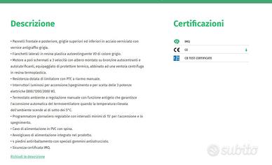 Termoconvettore Vortice Caldore RT, NUOVO mai usato, in confezione originale e perfettamente funzionante .800/1200/2000 W con programmatore giornaliero e Termostato ambiente a regolazione manuale con funzione antigelo. leggi la descrizione sotto per tutte le caratteristiche.