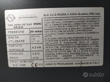 Olimpia Splendid 99892 Infra Metano, Stufa Infrarossi a Metano 4000 W, Made in Italy, Nero