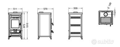 Stufa a legna Ilaria (o Sofia Evo Easy) costruita in acciaio e ghisa con grande superficie di scambio. Area riscaldabile 100 metri quadrati (82 mq ), potenza nominale 11,1 Kw (7,4)con finitura in maiolica rossa.(o ghisa grigia)