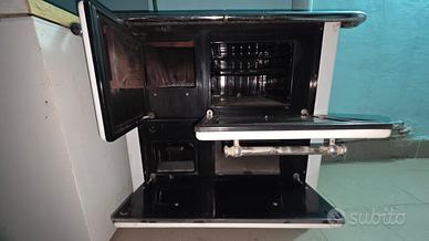 Focolare interamente in ghisa così come la piastra superiore per cucinare. formo in acciaio smaltato. Dimensioni: H 86. L 97. P 62 cm