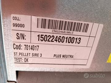 Vendo per inutilizzo stufa pellet modello Sire3Plus è la stufa a pellet da 10,5 kW di potenza convogliabili in più stanze grazie alla canalizzazione di cui è dotata.