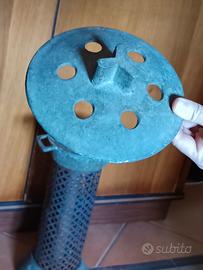 Antica stufa elettrica portatile di tipo tradizionale in ferro e ghisa prima metà 900. Base cilindrica forata e recipiente superiore con conperchio in ottime condizioni come da foto. Da collezione