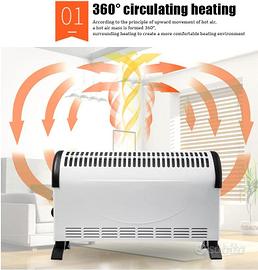 Stufa Termoconvettore Riscaldatore d'aria elettrico con termostato 1800W.