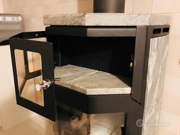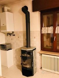 Vendo stufa marca Scan azienda leader Danese nella produzione di stufe da riscaldamento. Rivestita in pietra ollare che mantiene il calore anche dopo lo spegnimento. Il fuoco è a vista grazie alla chiusura in vetro trasparente. Piccolo fornetto scalda vivande. Tubo diametro 13 cm. Misure 53X 44 h. 98, tubo lungo 125 più varie curve. Usata ma in perfette condizioni.