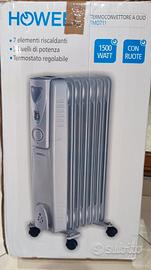 Stufa Termoconvettore a olio Howell 1500 WATT, termosifone elettrico a 7 elementi riscaldanti, 3 livelli di potenza, termostato regolabile e ruote per facilitare il trasporto.