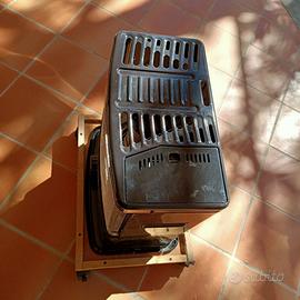 Stufa ben funzionante completa di base con ruote che regalo nell acquisto, la base risulta molto comoda per spostare la stufa da una stanza all'altra senza doverla sollevare ogni volta. Scalda davvero in un modo impressionante, l' accensione è elettrica, si aziona semplicemente un pulsante che attiva l accensione dopodiche fa tutto da sola. No servono fiammiferi fuochi ecc.