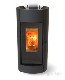 Stufa a pellet o legna modello CHIC con rivestimento bianco o nero opaco, 5 stelle, corpo stufa ermetico a convenzione naturale e ventilazione superiore con Pelletpower ,oppure con due canalizzazioni posteriori