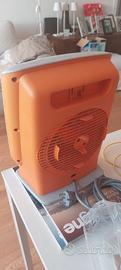 Stufetta termoventilatore elettrico De Longhi adatto anche per bambini e ambienti umidi (IP21), fa anche da ventilatore estivo, termostato ambiente con funzione antigelo, colore arancione.