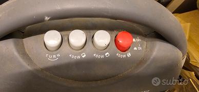 include diverse impostazioni di potenza (come indicato dai pulsanti che si riferiscono ai watt), un termostato per regolare la temperatura e un sistema di sicurezza anti ribaltamento.