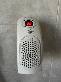 Stufetta salvaspazio, ideale per ambienti non troppo grandi, di facile utilizzo. Si appende direttamente alla presa, sia in orizzontale che in verticale, basta cliccare il bottoncino e girare la spina. Varie temperature, funziona perfettamente. Inutilizzo perché ne ho già una.