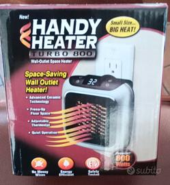 Handy Heater Turbo, riscaldatore a muro da 800 Watt. Con impostazione temperatura, timer di spegnimento, attacco presa schuko, orientabile.
