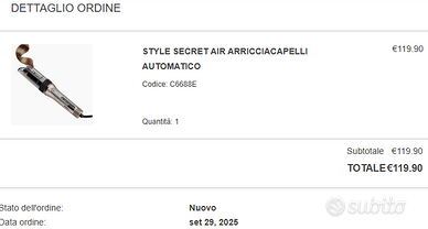 Arricciacapelli automatico BaByliss acquistato a fine settembre 2025, perfettamente funzionante e utilizzato 2 sole volte. Non lo utilizzo più perché il mio capello è troppo liscio per tenere questo tipo di piega, purtroppo.