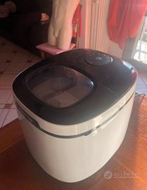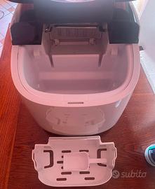 E perfettamente funzionante. Ha una capacità per il serbatoio dell'acqua di 2-2.5L e ogni ciclo di produzione di ghiaccio genera 9 "cubetti". Raggiunta un certo volume, la macchina si blocca e aspetta che venga svuotata per continuare i vari cicli successivi.