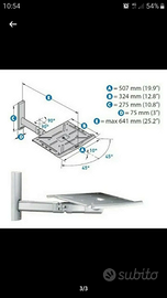 Vendo per inutilizzo supporto per tv (tubo catodico) 20-25" , composto da braccio con doppio snodo e piattaforma inclinabile, più supporti regolabili per alloggiamento (sotto piattaforma) di decoder o lettore dvd oppure videoregistratore. Il modello è Space Sistem TVR25 portata max 40kg.