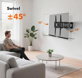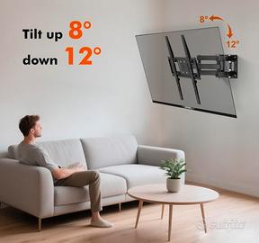 Supporto TV Parete per 26-65 Pollici con Doppio Braccio, Staffa TV Girevole Inclinabile Estensibile, Fino a 55 kg, Max VESA 400x400mm, Più Stabile, Facile da Montare con Livella Tipo di montaggioA parete Tipo di movimento Articolare MaterialeLega di acciaio ColoreNero Dispositivi compatibili Televisore DIMENSIONI UNIVERSALI: Il supporto tv muro con doppio braccio supporta tv da 26 a 65 pollici, e curve fino a 35 kg (compatibile con: Samsung, LG, Sony, ecc.). Compatibile con VESA: min. 50 x 50 a max. 400 x 400 mm REGOLABILE: Porta tv da parete girevole ± 45°, inclinabile +8°, -12°, protezione antiabbagliamento. Goditi il miglior angolo di visione sullo schermo Robusto e stabile: il staffa tv 65 pollici è realizzato con materiali in acciaio addensato di alta qualità. Robusto e durevole, elevata capacità di carico (max 35 kg) FACILE MONTAGGIO: Grazie al manuale chiaro e a tutti gli accessori di montaggio, è possibile installare il supporto tv parete in 15 minuti RISPARMIO DI SPAZIO: La distanza tra il supporto e la parete è minima 6 cm, massima 37,5 cm. Ciò consente di risparmiare spazio e rende la casa ordinata NUOVO IN SCADUTO