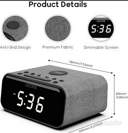 Lecone Wireless Charging Bedside Digital Alarm Clock, Dimmable LCD Screen for Bed with USB Charger, Bluetooth Speaker, FM Radio Compatible with iPhone and Samsung Galaxy
