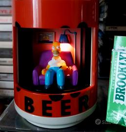 sveglia vintage 1999 dei Simpons quando suona la sveglia si aprono le porticine e dentro si vede Homer seduto sul divano che si beve la sua ama ta birretta;il tutto con un sottofondo musicale che riproduce la sigla del cartone animato! mai usata, testata e funzionante. funzionamento a pile 3 ministilo.