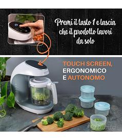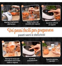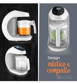Praticamente nuovo, usato due volte con ancora 5 mesi di garanzia attivi. Con scatola originale. * ROBOT 7-IN-1 - Il Baby Food Cooker Sweety Fox è IL cuoci pappa che vi permetterà di preparare tutti i pasti del vostro bebè grazie alle sue 7 funzionalità predefinite: Cuoce a vapore, Scongela, Riscalda, Sterilizza, Mixa, Funzione Pulse e Pulizia Automatica. * UNO SCHERMO DIGITALE PER FUNZIONI AUTOMATICHE - Lo scalda-biberon presenta 7 programmi predefiniti. Preparate i vostri alimenti, selezionate un programma e lasciate che il robot faccia il resto, vi avviserà quando il programma è terminato. Potete sempre cambiare i programmi a vostro piacimento grazie alla possibilità di modificare manualmente il tempo di cottura. * QUALITÀ E SICUREZZA VI ASPETTANO - Il cuocipappa omogeneizzatore è garantito senza BPA per proteggere la salute del vostro bambino! E per la vostra sicurezza, il robot è dotato di una funzione anti surriscaldamento, di un manico antibruciatura e di un blocco di sicurezza che impedisce alle lame di entrare in funzione se il frullatore, il cestello e il coperchio non sono installati correttamente. * UN APPARECCHIO MULTIFUNZIONE E PRATICO - Il cuoci pappa bambini Sweety Fox è pensato e concepito per aiutarvi e facilitarvi la vita. Oltre a funzionare in maniera automatica ed essere sicuro, il vostro robot da cucina multifunzione cottura è molto facile da montare e smontare per il lavaggio, che può anche essere effettuato in lavastoviglie. È incluso un libro di ricette di pappe. * MarchioSweety Fox * Caratteristica specialeBlocco di sicurezza, Programmabile * Dimensioni del prodotto29,5P x 15l x 26H cm * ColoreBianco * Potenza in watt300 watt * Capacità vaschetta600 Millimetri