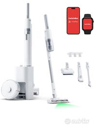 Come da titolo vendo oggetto nuovo per conto di un amico regalo non piaciuto no garanzia sigillato SwitchBot K10+ Pro Combo Robot Vacuum con Dual Auto-Empty Dock per 70 giorni di pulizia, Aspirapolvere Senza Filo con Luci LED Informazioni su questo articolo Pulizia 3-in-1: Il SwitchBot K10+ Pro combina un mini aspirapolvere robot, un aspirapolvere a mano senza filo e una base di raccolta polvere doppia. Il robot compatto pulisce agevolmente sotto i mobili, garantendo una copertura del pavimento al 100%, mentre l'aspirapolvere a mano include più附件 per compiti di pulizia versatile. Raccolta Intelligente Duale della Polvere: La nostra stazione base consente sia all'aspirapolvere robot che all'aspirapolvere senza filo di svuotare automaticamente la polvere. Con la Tecnologia di Aspirazione TwinFlow️, anche i detriti più grandi vengono eliminati efficacemente. Il suo design ad alta capacità da 3L fornisce fino a 70 giorni di immagazzinaggio dei rifiuti. Potente Aspirazione: Il nostro aspirapolvere senza filo fornisce un'aspirazione potente di 20.000Pa con una progettazione a vortex, assicurando una pulizia profonda della polvere, dei capelli e dei peli degli animali domestici dalle fessure del pavimento e dai tappeti, con un impressionante tasso di raccolta del 99,77%. La spazzola a forma di V e il pettine anti-intreccio evitano efficacemente gli ostacoli nei capelli, mentre il sistema di filtrazione a 5 stadi rimuove il 99,5% degli allergeni, rendendolo ideale per famiglie con animali domestici e bambini.