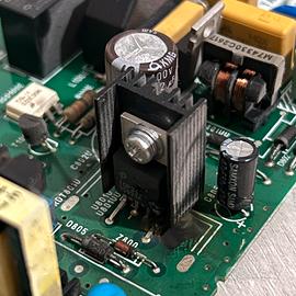 Come visibile in foto, il danno è localizzato nella zona del regolatore con dissipatore di calore (leggera bruciatura su PCB).