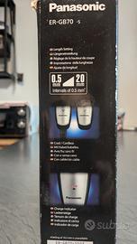 Vendo Panasonic ER-GB70-S503 Regolabarba e Tagliacapelli. Lavabile con acqua. Regolazione di taglio da 1 a 20 mm, a step di 0,5 mm. Completo di confezione originale, istruzioni, pettini ed accessori. Segnalo unicamente la capacità batteria non più ottimale (se l'utilizzo non è particolarmente prolungato, è sufficiente) comunque perfetto nell'utilizzo con l'alimentatore.
