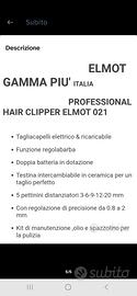 NUOVO ... Tagliacapelli professionale elettrico ELMOT 021, lame in ceramica, doppia regolazione di taglio, seconda regolazione di precisione da 0.8 a 2 mmm testina intercambiabile in ceramica per un taglio perfetto 5 pettini distanziatori da 3, 6, 9, 12 e 20 mm, due batterie con alimentatore, kit di manutenzione con olio lubrificanti, spazzolino e molla di ricambio.