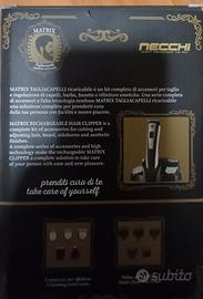 Vendo tagliacapelli/regolabarba Necchi Professional linea Matrix.Funzioni: Taglio, regolazione e rifinitura di precisione (barba/capelli).Caratteristiche: Ricaricabile (Cordless), display LED con 5 velocità, tecnologia Wet & Dry.Stato: [Nuovo / Come nuovo] con scatola originale e accessori.Ottimo per rifiniture di precisione.