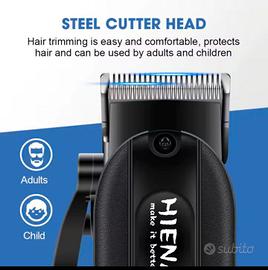 Speciale testina per la regolazione del taglio, con blocco di sicurezza che si attiva automaticamente all’accensione del Tagliacapelli, in modo tale che non si muova quando viene premuto sulla pelle, per garantire la massima precisione della lunghezza di taglio desiderata. Dotato di 20 lunghezze di taglio selezionabili per garantire la massima precisione di taglio, sia per barba che per capelli, da 1 a 10 mm a intervalli di 0,5 mm. Dotato di lame in acciaio inox resistenti per tagliare e rifinire barba e capelli. Sono completamente removibili per assicurare una facile pulizia, che si può effettuare con la spazzolina in dotazione. Ricaricabile tramite cavo USB in dotazione, il quale può essere comodamente collegato ad un adattatore da muro o da macchina e alla presa USB del pc. Il tempo di ricarica è di 8 ore, e viene garantito un utilizzo continuativo di 60 minuti. Primo contatto via mail o WhatsApp (3663577887), grazie