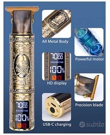 Tagliacapelli Uomo Professionale, Macchinetta per Capelli con Display LED T-lama Trimmer Kit USB Ricaricabile Impermeabile Portatile Rasoio Elettrico Barba per Famiglia/Barbiere