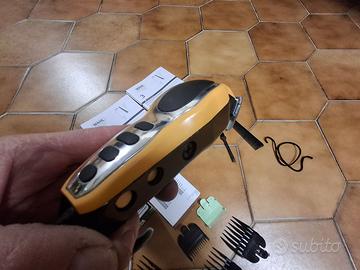 Taglia capelli WAHL CLOSE CUT PRO 79111-1616 giallo- cromato, a cavo, sistema di taglio PowerDrive che ha una potenza maggiore di un taglia capelli convenzionale, Lama di precisione autoaffilanti in acciaio al carbonio con sovrapposizione zero consente un taglio Ultra-corto, ideale per rifiniture e tagli di precisione, viene fornito: - taglia capelli con cavo - N. 6 spessori pettini plastici per tagli da 0,6 a 13 mm ( 1,5mm, 3mm, 4,5mm, 6mm, 10mm e 13mm ) - N. 1 copertura lama - N. 1 pettine - N. 1 spazzola per pulizia - N. 1 olio per lama - imballo rigido e manuali cartacei originali come si vede dalle foto reali in questo annuncio. USATO POCO, PULITO E SANIFICATO CON DISINFETTANTE E RE-IMBALLATO NELLA SUA CONFEZIONE ORIGINALE Preferito incontro di persona e pagamento in contanti SOLO nella mia Zona, non vado su è giù per il compratore. In alternativa spedizione in tutta Italia con SOLO il servizio tutto Subito.
