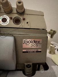 Vendo tagliacuci industriale Goldex Model 305, specifica 516HT1-55, macchina professionale 5 fili punto 516 (safety stitch), ideale per confezione, maglieria, sorfilatura e cuciture di sicurezza. Completa di: Tavolo originale industriale con righello graduato Motore installato con pedale Supporto porta-coni filo Coltello taglia-tessuto integrato Macchina completa pronta da provare Adatta per: Sorfilatura professionale Cuciture di sicurezza 5 fili Assemblaggio e rifinitura capi Laboratori sartoriali, confezioni, artigiani Macchina usata, venduta nelle condizioni visibili in foto.