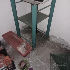 Tavolini in ferro e vetro con ruote che scivolano e non incastrate. N.b in quello colore bronzo sui vetri è carta gommata che è stata messa nel trasporto per non far rompere il vetro , QUINDI FACILE DA TOGLIERE.