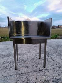 tavolo da lavoro inox con pareti, ideale per preparazioni alimentari, pizza, panini,pane e come postazione da taglio. misure piano di lavoro 85x60 cm. Le alzate misurano 40cm . il piano di lavoro si trova a 85 cm da terra.