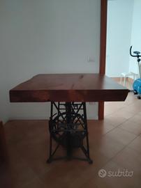 Tavolo in legno massello con basamento di una vecchia macchina da cucire singer