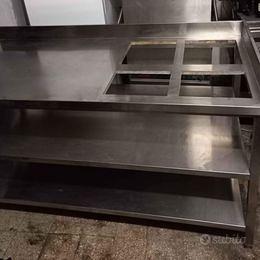 Tavolo di lavoro in acciaio inox con 2 ripiani condizioni come da foto.